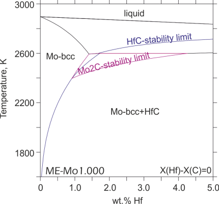 Figure 4. Quasibinary Mo – HfC diagram at the Mo-rich corner
